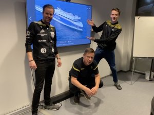 Kristian Westgaard (salg- og markedssjef – t.v.), Terje Marcussen (daglig leder) og Markus Slyngenborg Jensen (salg- og markedsmedarbeider) håper riktig mange vil være med til Danmark for å se Starts treningskamp mot Esbjerg 3. februar. (Foto: Egil Olsen)