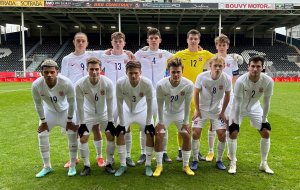 Det norske U20-landslaget som startet i 1-2-tapet for Belgia tirsdag. Starts Jasper Silva Torkildsen var debutant. (Foto: Thomas E. Huse, Norges Fotballforbund)