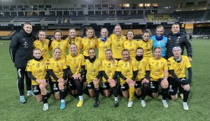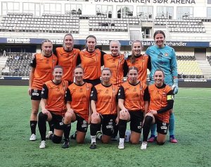Gimletroll Kvinner A, som neste sesong blir Start Kvinner, på en av de siste treningene før søndagens kvalifiseringskamp om å beholde plassen i 2. divisjon, mot Sarpsborg 08 – bak f.v.: Sigurd Hagen (trener), Eirin Noem Korsvik, Sandra Eilertsen, Isabella Hayes Sundby (spillende trener), Rebecka Rosenberg, Frida Abrahamsen, Mette Lorentzen, Jana Lennartz, Frida Holmøy, Karen Olsen og Radoslaw Chmielwski (keepertrener). Foran f.v.: Ina Andresen, Maja Kronborg, Hannah Larsen, Marie Knutsen, Mia Olsen Leinan, Linn Farbergshagen, Karoline Fredriksen, Tiril Toft og Stine Wahlin Hansen. (Foto: Egil Olsen).