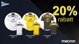Macron har fått påfyll av drakter og kjører nå kampanje med 20% på Start-drakter i butikk, stand og på nett.
