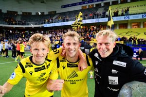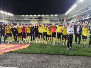 Det var mye glade fjes etter 3-2-seieren over KFUM mandag kveld. Les kampreferat og se høydepunkter fra kampen. Foto: Egil Imenes