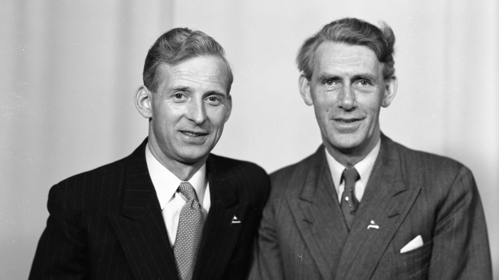 Bildet er fra 1947 da Adolf Arntsen fikk gullmerket og Trygve Hamre var utnevnt til æresmedlem.