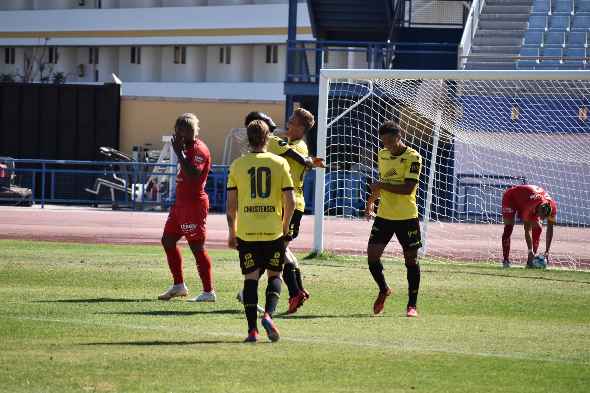 Jonas Deumeland (Aleksander Pedersen fra 46 min) - Damion Lowe, Isaac Twum (Mikael Ugland fra 85), Joackim Jørgensen - Eirik Wichne, Adnan Hadzic (Kasper Skaanes fra 46), Tobias Christensen, Henrik Robstad - Kevin Kabran, Adeleke Akinyemi (Sander Sjøkvist fra 85), Mathias Bringaker (Aron Sigurdarson fra 46).
