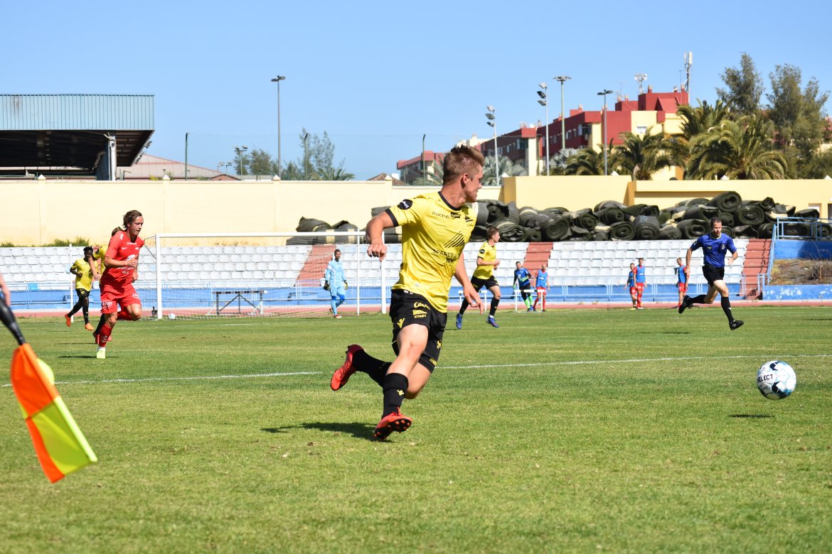 I over 25 grader og strålende sol spilte Start og Brann treningskamp på Maspalomas stadion i Gran Canaria.