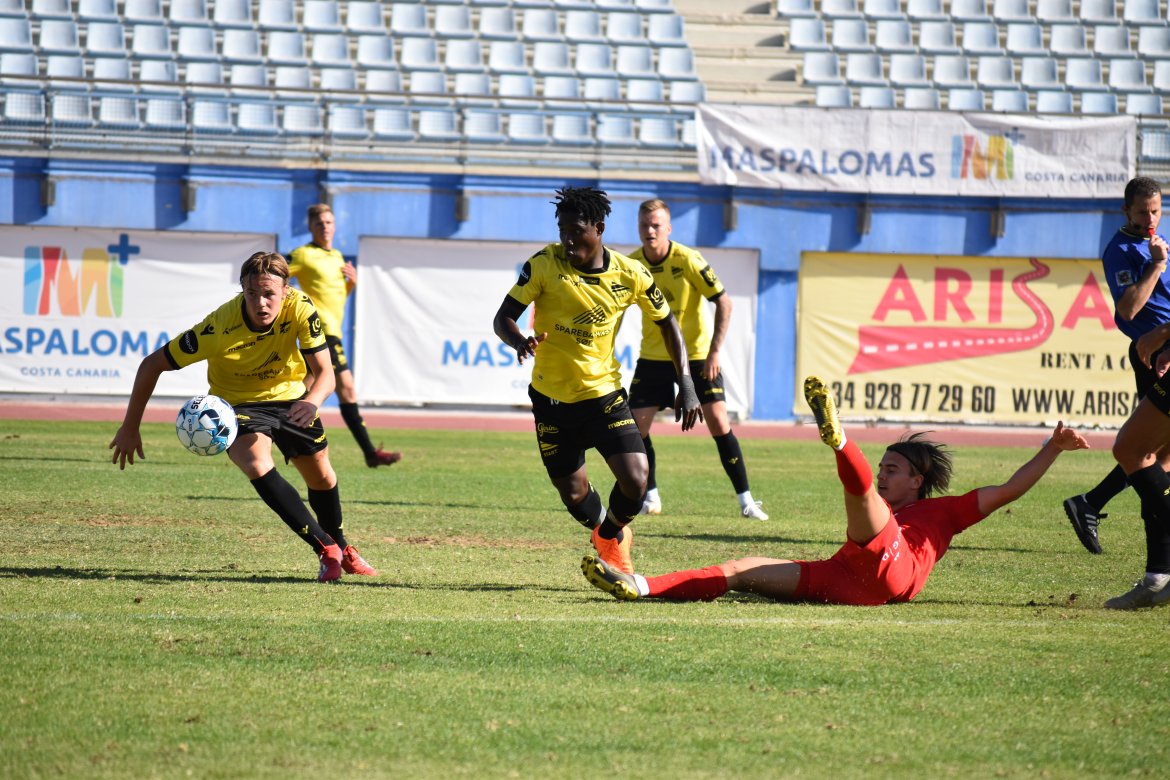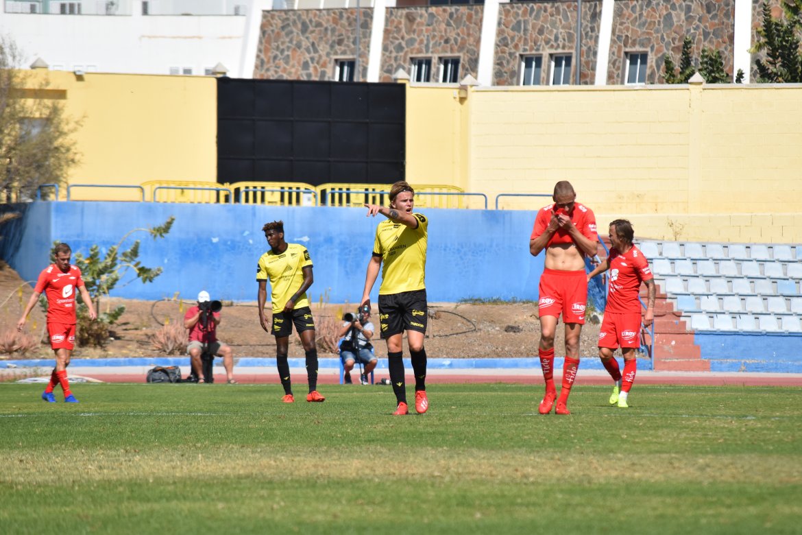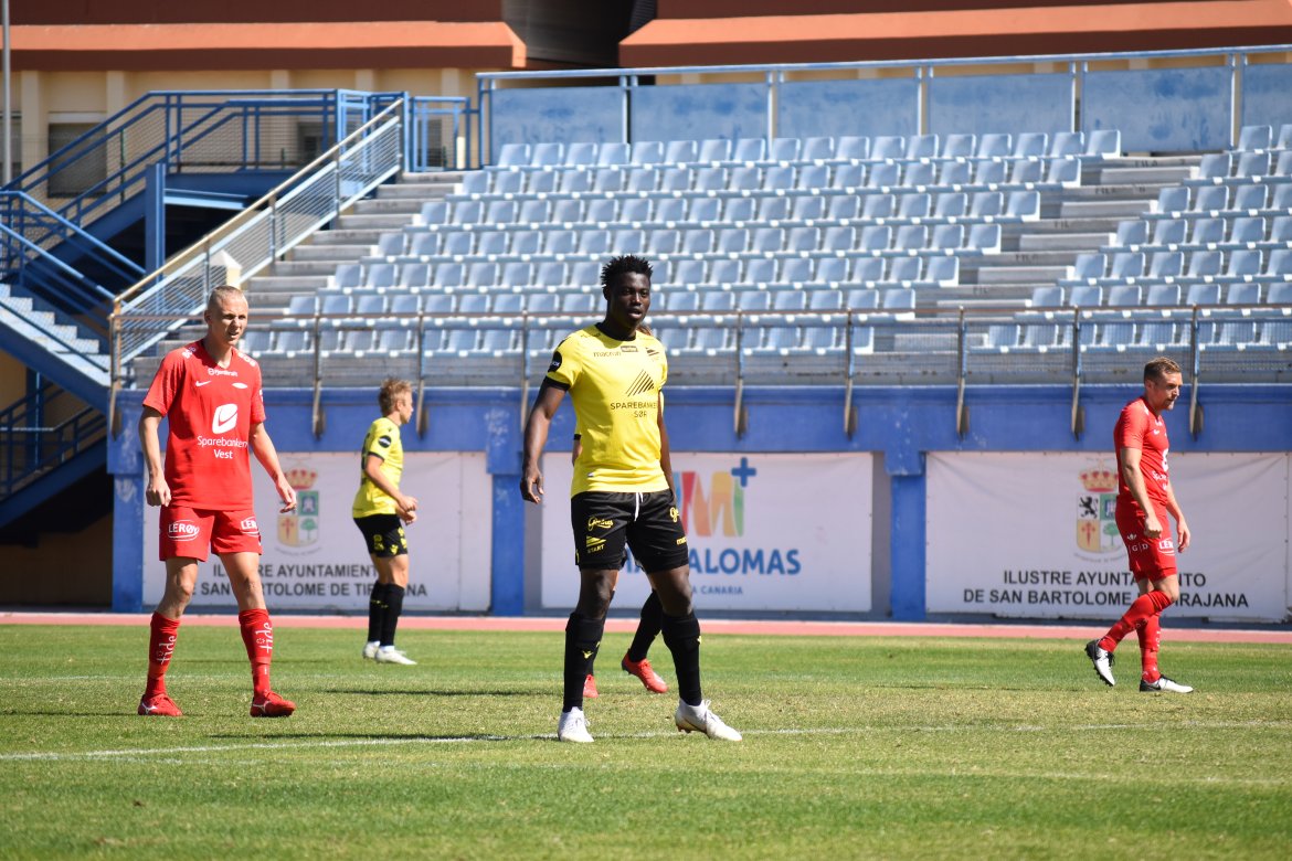 Slutt: Det ender 1-1 på Gran Canaria i en kamp som ble preget av en hard og humpete bane, og steikende sol. Start var solide defensivt i en drøy omgang, mens Brann kom sterkere i andre omgang.