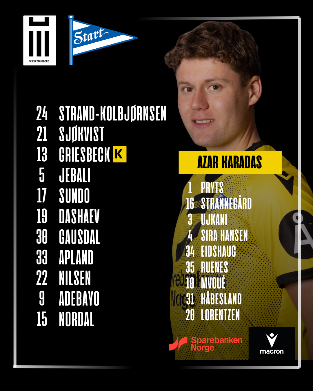 Start åpnet frisk og var det førende laget de første minuttene. Etter 11 minutter slo Sander Sjøkvist et godt innlegg som har retning mot Ahmed Adebayo inne i boks. Dessverre var hjemmelagets sisteskanse våken og fikk bokset ballen unna før Adebayo fikk hodet på den. Deni Dashaev viste seg frem etter 19 minutter spilt, da han brukte hurtigheten sin til å passere Tønsbergs back, før han slo et godt innlegg inn til Adebayo. Men igjen så bokset keeper unna og fortsatt ingen scoring.